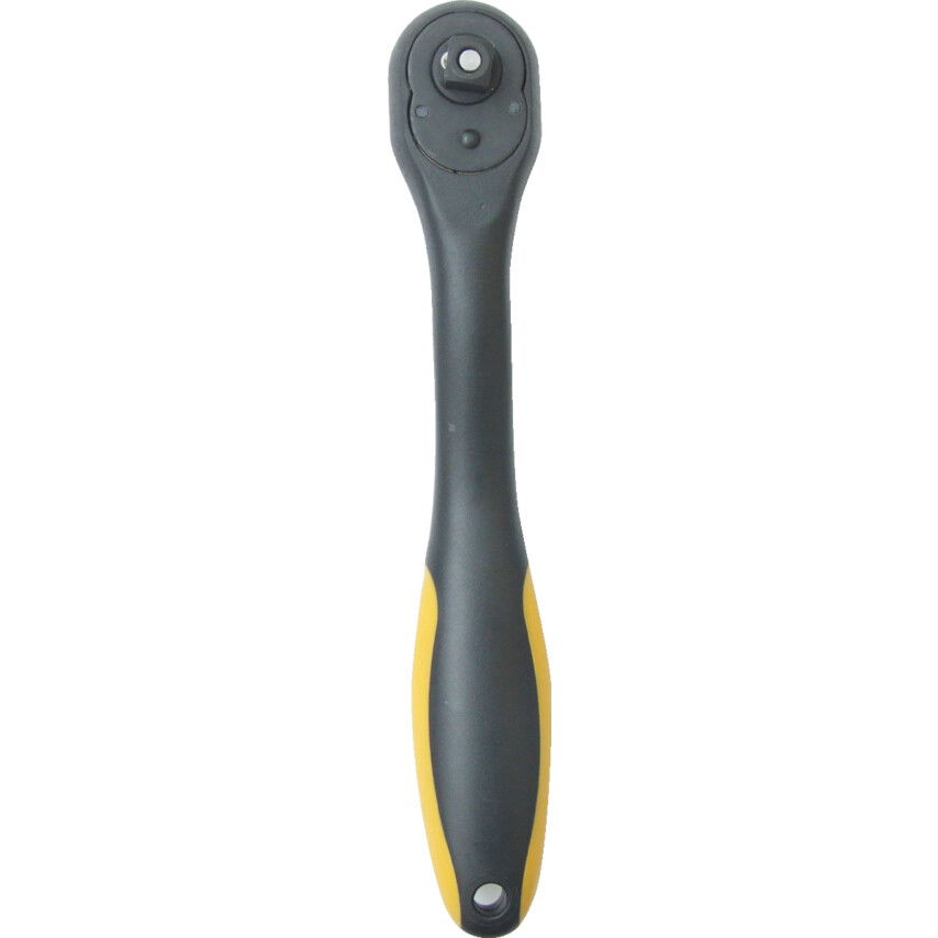 Kiváló minőségű, többkomponensű, forgatható racsnis hajtókar forgatható karral, gyorskioldó nyomógombbal és nyújtott markolattal, mely megakadályozza az ujjak felsértését. Többkomponensű anyagból készül, amely nagyon könnyűvé, mégis nagyon ellenállóváteszi. A 72 fogú fogaskerék maximális meghajtóerőt, a króm-vanádium mag pedig szilárdságot biztosít.
