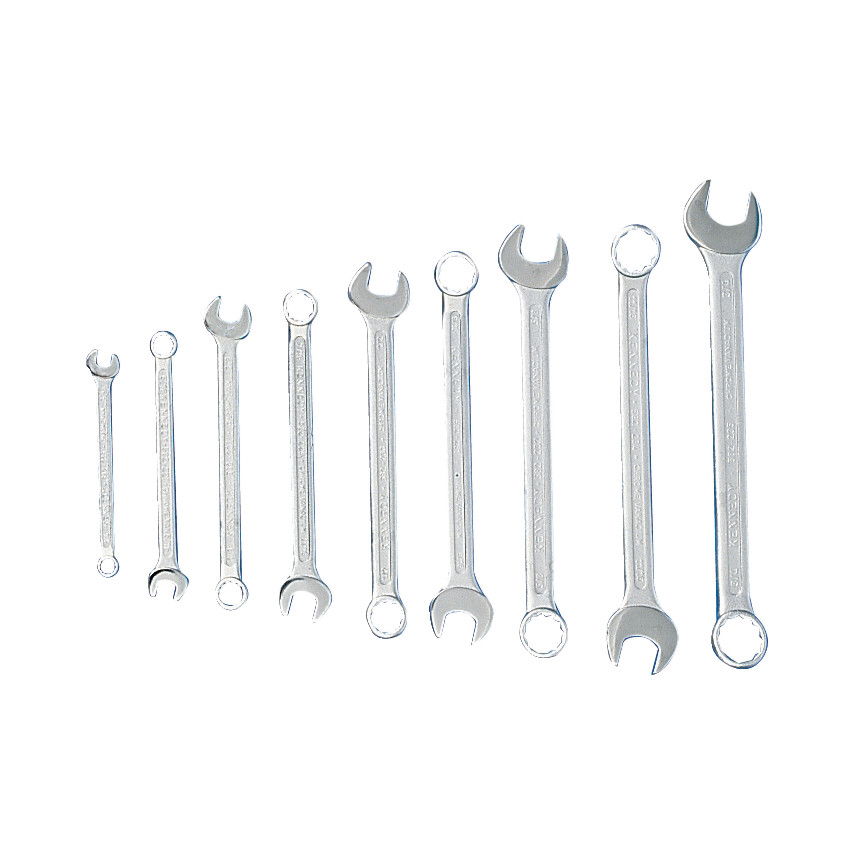 Selyemfény polírozású, króm-vanádium acélból (kivétel*, amely kovácsolt szénacél) készült kulcsok, polírozott fejekkel.