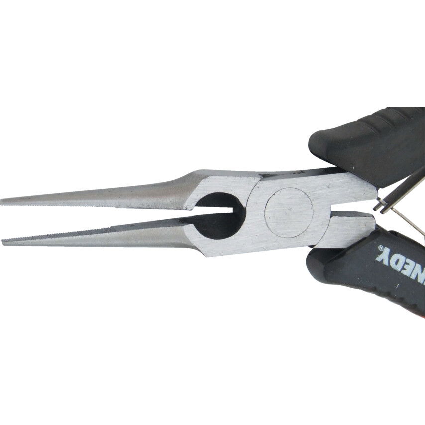 Elektrosztatikus szétszóródást segítő markolat mely csökkenti az elektrosztatikus energiák által okozott sérülések valószínűségét érzékeny műszerek esetén. Válogatott minőségi acélból gyártva. A kettős anyagból készült műanyag bevonatú markolat lehetővé teszi, hogy a dolgozó minimális erőkifejtéssel a lehető legnagyobb szorítóerőt alkalmazza. A műanyag bevonat magja polipropilén a nagyobb szilárdság és tartósság miatt, kívülről pedig puha termoplasztik, mely csúszásbiztos, kényelmes fogást biztosít.