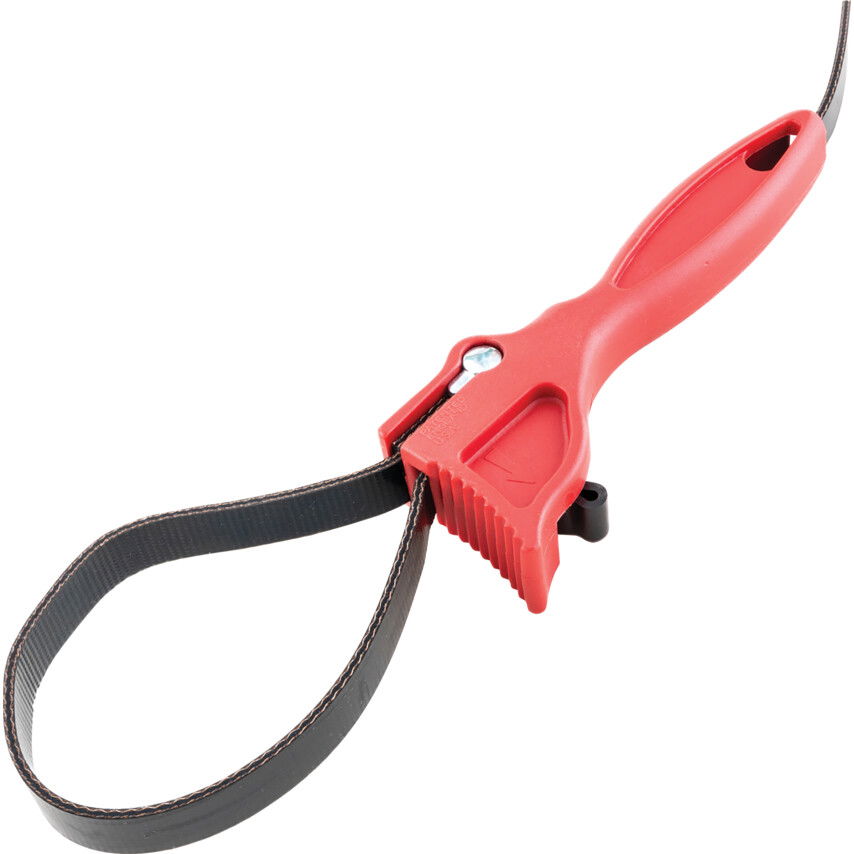 Csövekhez és alaktalan tárgyakhoz könnyen állítható erős gumiszíj, műanyag fogantyúban.