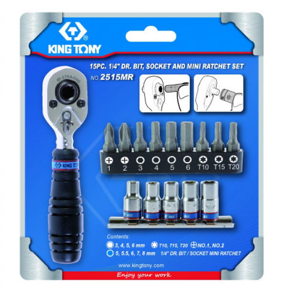 King Tony 15 részes 1/4˝-os dugókulcs & bitkészlet 2515MR