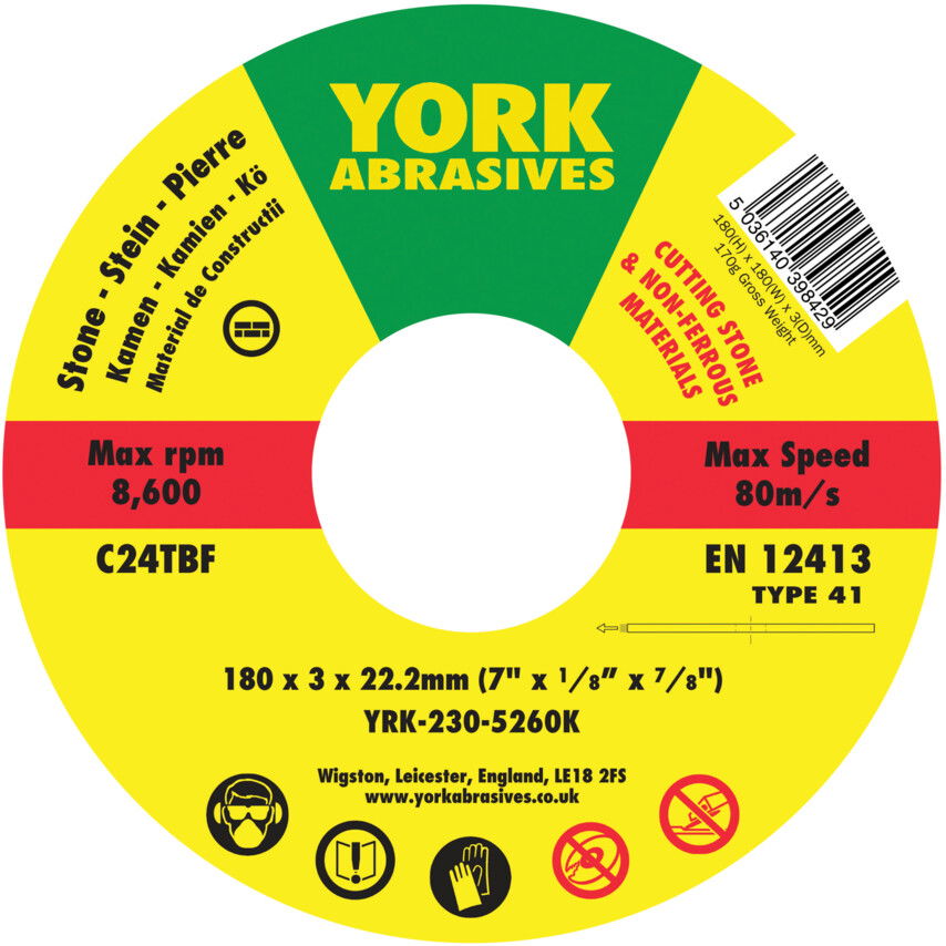 A gépkezelő biztonságának és az optimális teljesítmény szem előtt tartásával készültek. Minden hordozható sarokcsiszolóval használhatók. A 180 mm-es és a 230 mm-es korongok körfűrészekkel is használhatók, illetve a 300-350 mm-es korongok kompatibilis furatú asztali körfűrészekhez/vágógépekhez használhatók. Nedves vágáshoz nem használhatók.