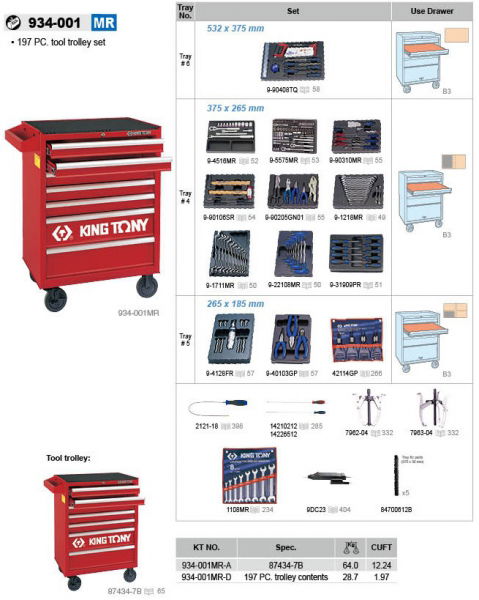 King Tony 197 részes, 7 fiókos szerszámoskocsi 934-001MR
