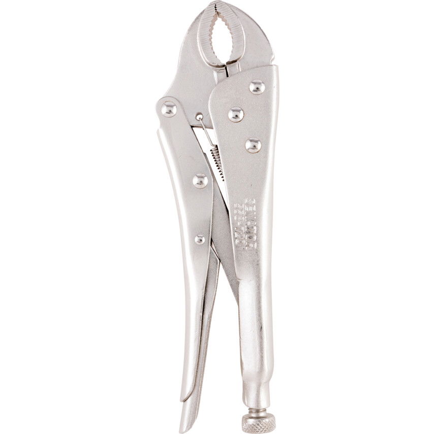 Nagy szakítószilárdságú, króm-vanádium acél szerszámtest, süllyesztékben kovácsolt, edzettacél-pofák korrózióvédő fényes nikkelbevonattal. A pofa szorítónyomása a recézett fejű csavar segítségével szabályozható, a pofák nyitását rugóerő biztosítja. Karbantartási munkákhoz. A záró mechanizmus a beállított szorítóerővel zárva tartja a fogót, szabadon hagyva a felhasználó mindkét kezét.