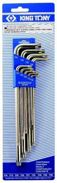 King Tony 9 részes torxvégű furatos hosszú imbuszkulcs készlet T10-T50 20419PR