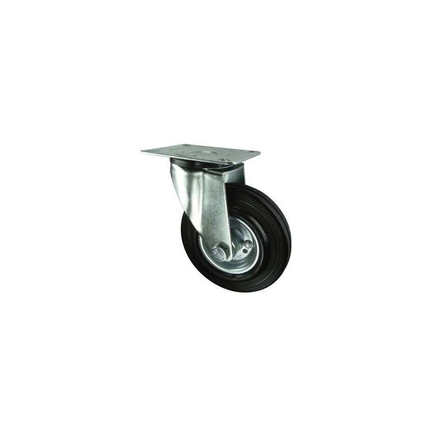 Préseltacél görgők általános közepes igénybevételű ipari felhasználásra. Acélaggyal szerelt fekete, ipari gumiabroncsos görgők tűcsapágyas kerekekkel.