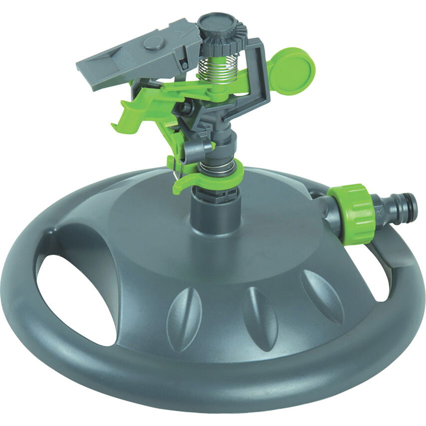 Kis felületű talp, állítható távolság, teljes kör vagy adott körszelvény locsolásának beállítása. Max. 24 m2 öntözhető terület.