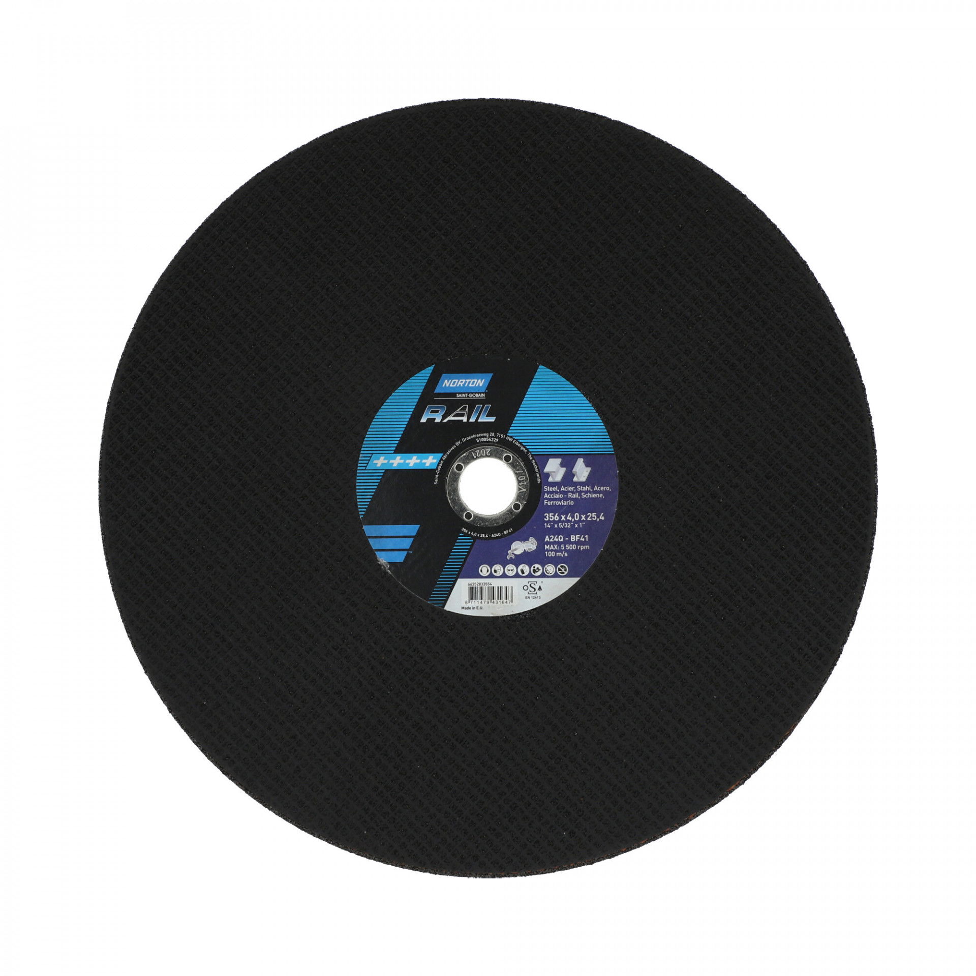 Norton Rail (Sín) vágókorong 356x4,0x25,4mm A24Q Medium, 10 db/csomag
