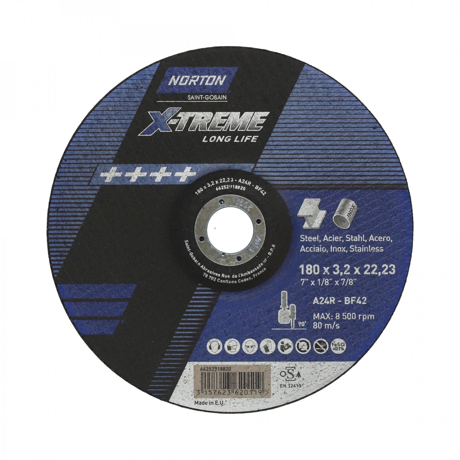 Norton X-Treme Life fém-inox vágókorong 180x3,2x22,23mm A24R BF42, 25 db/csomag